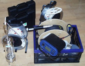 z.B. ISO normierte Handkäscher, AQEM-Käscher, Siebsätze Hydrobios, Bodendredge, Bodengreifer, Pfahlkratzer, Planktonnetze, Wasserschöpfer nach Ruttner, tiefen- integrierender Wasserschöpfer für Planktonproben (Hydrobios) zur Umsetzung WRRL, Seicchischeibe, Schlauchboot mit Aussenbordmotor, Ruderboot, GPS-Empfänger |